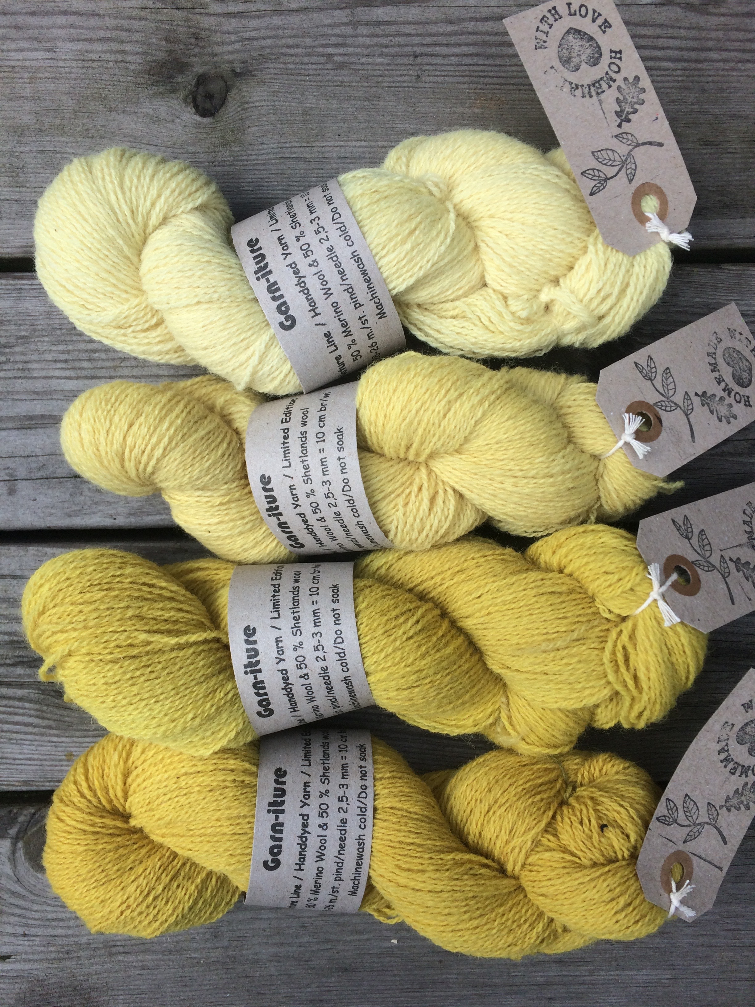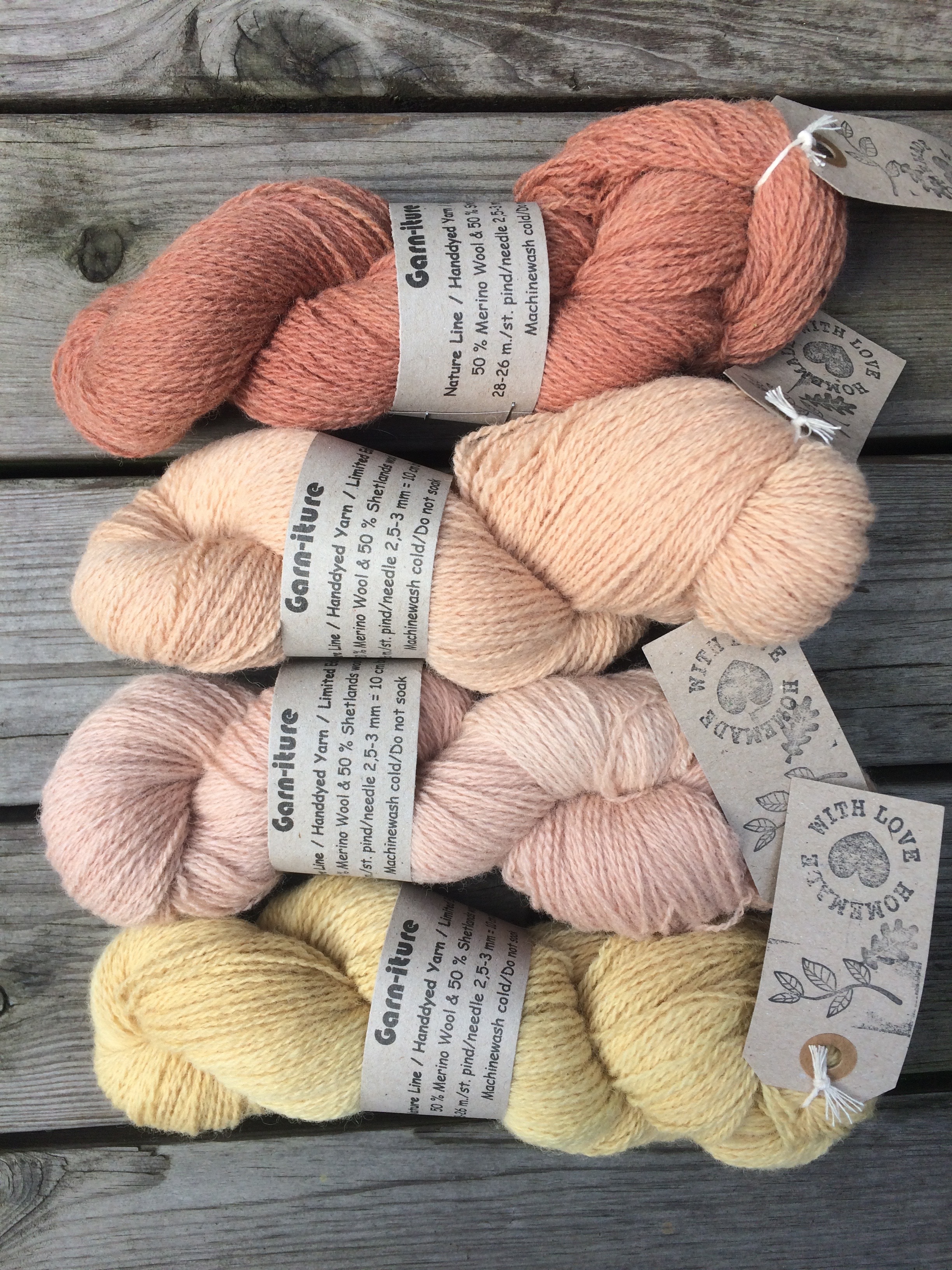Derudover håndfarvet garn fra fx Nuturing Fibres og garn jeg selv plantefarver.